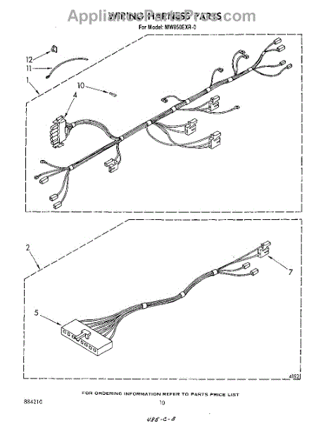 Parts for Whirlpool MW850EXR0: 10 - Wiring Harness Parts