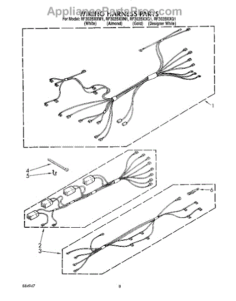Parts for Whirlpool RF302BXXG1: 07 - Wiring Harness Parts