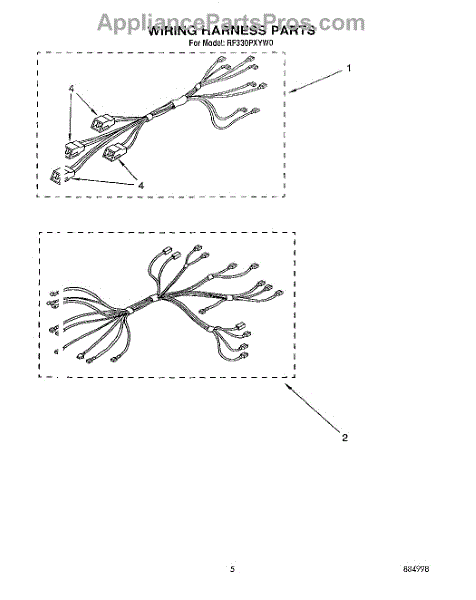 Parts for Whirlpool RF330PXYW0: 05 - Wiring Harness Parts