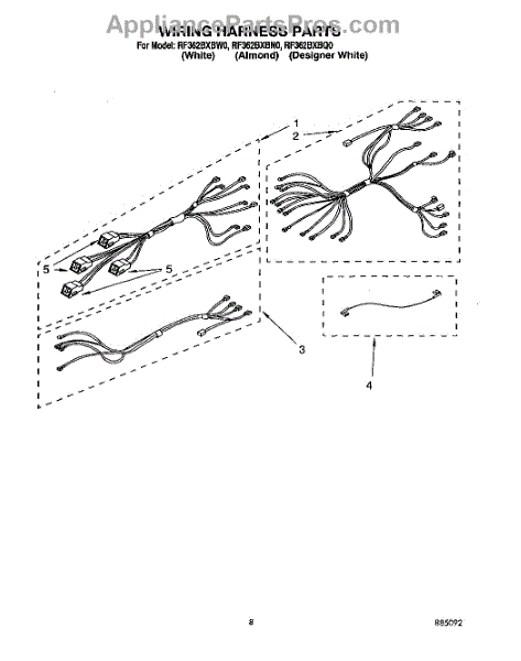 Parts for Whirlpool RF362BXBW0: 06 - Wiring Harness Parts