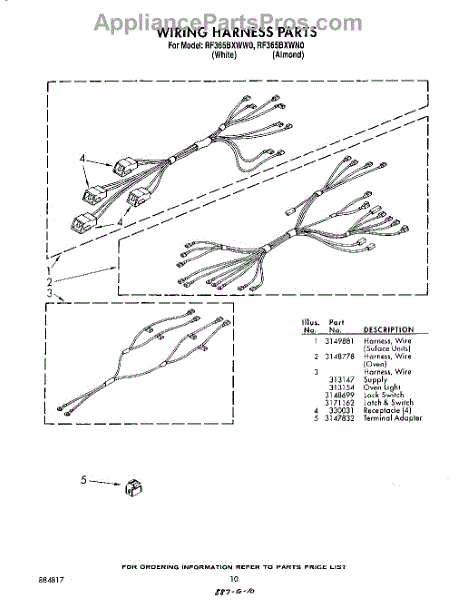 Parts for Whirlpool RF365BXWN0: 10 - Wiring Harness Parts