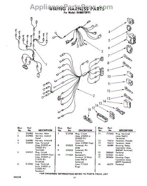 Parts for Whirlpool RHM973PP1: 17 - Wiring Harness Parts