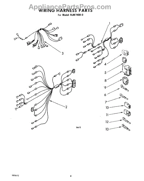 Parts for Whirlpool RJM74000: 06 - Wiring Harness Parts