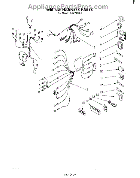 Parts for Whirlpool RJM77001: 06 - Wiring Harness Parts