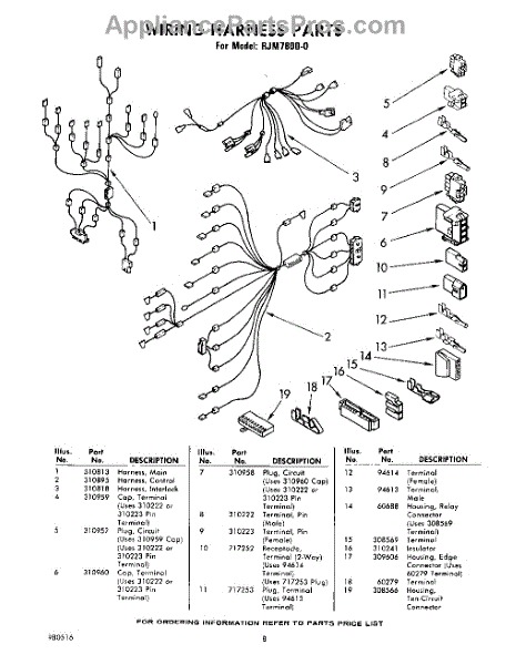 Parts for Whirlpool RJM78000: 08 - Wiring Harness Parts