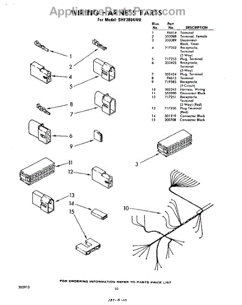 Parts for Whirlpool SHF3804W0: 10 - Wiring Harness Parts