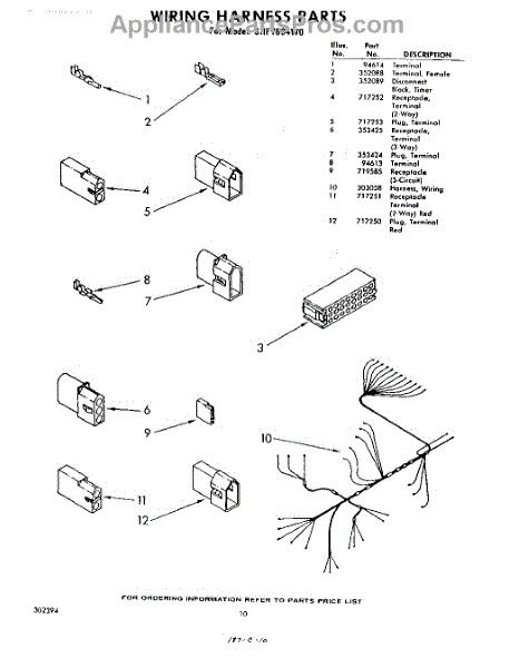 Parts for Whirlpool SHF7804W0: 10 - Wiring Harness Parts