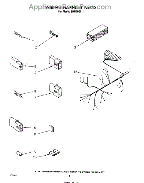 Parts for Whirlpool SHU40011: 06 - Wiring Harness Parts