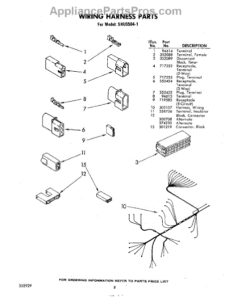 Parts for Whirlpool SHU55041: 08 - Wiring Harness Parts