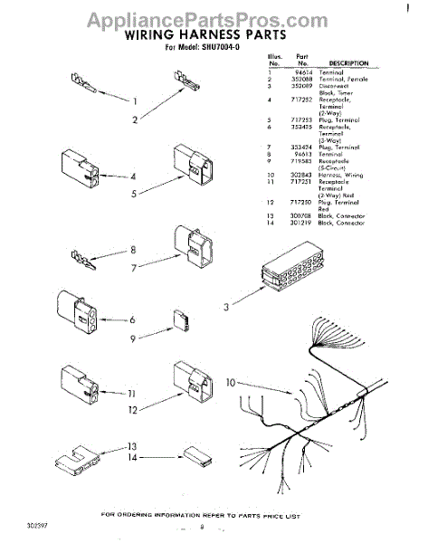 Parts for Whirlpool SHU70040: 08 - Wiring Harness Parts