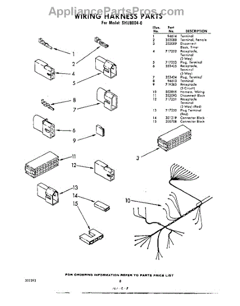 Parts for Whirlpool SHU80040: 08 - Wiring Harness Parts