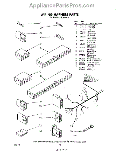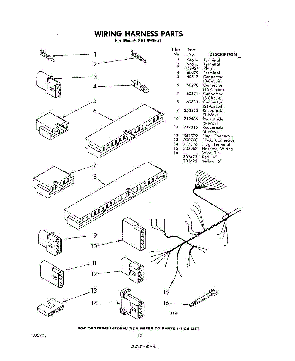Parts for Whirlpool SHU99050: 10 - Wiring Harness Parts