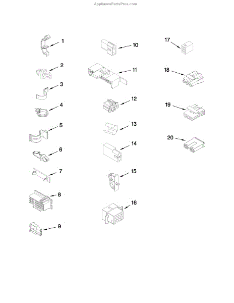 This 10-circuit connector housing provides a secure plug-style connection for the appliance wiring harness, restoring reliable electrical contact where the original plastic connector is cracked or melted. It helps ensure circuits stay seated and insulated. What it does: