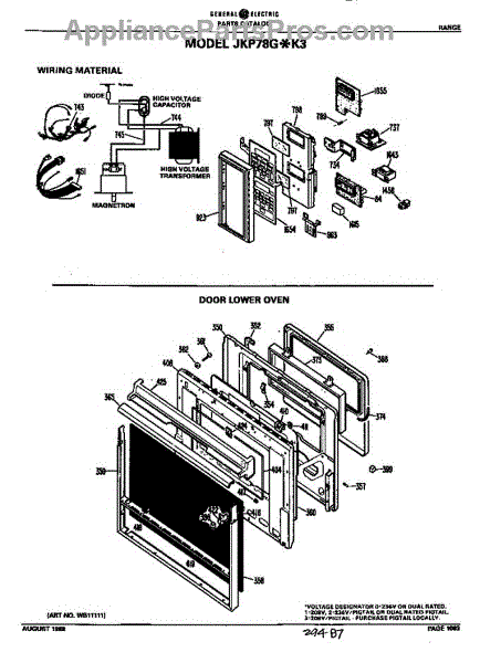 Parts for Ge JKP78GK3: Wiring Material Parts