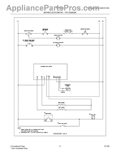 Parts for Frigidaire FEF336ASJ: 11 - Wiring Schematic Parts