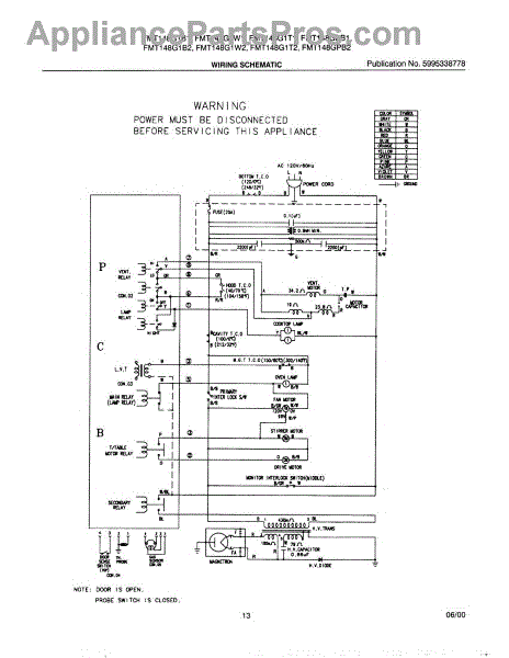 Parts for Frigidaire FMT144G1W2: 13 - Wiring Schematic Parts