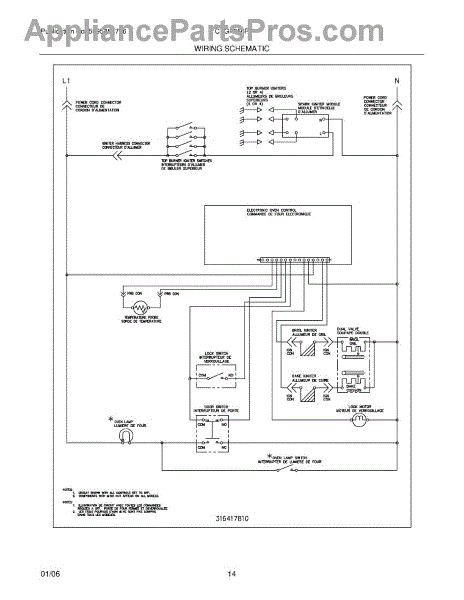 Parts for Frigidaire CFGF366FBA: 14 - Wiring Schematic Parts