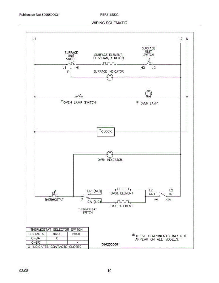 Parts for Frigidaire FEF316BSG: 10 - Wiring Schematic Parts
