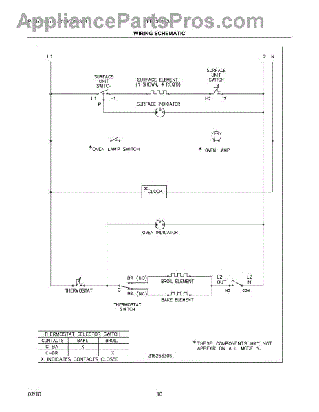 Parts for Frigidaire FEF316BSJ: 10 - Wiring Schematic Parts