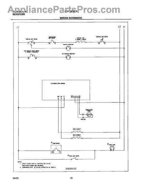 Parts for Frigidaire FEF336BCA: 10 - Wiring Schematic Parts