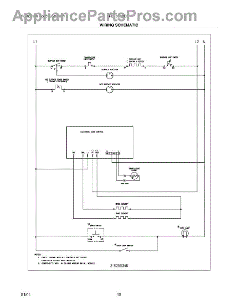 Parts for Frigidaire FEF336BCE: 10 - Wiring Schematic Parts