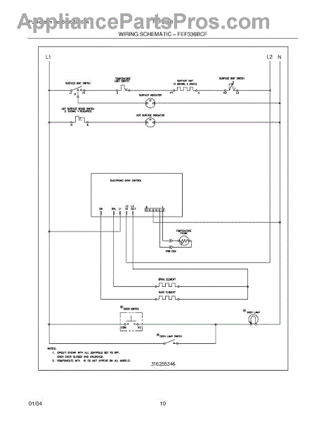 Parts for Frigidaire FEF336BCF: 10 - Wiring Schematic Parts