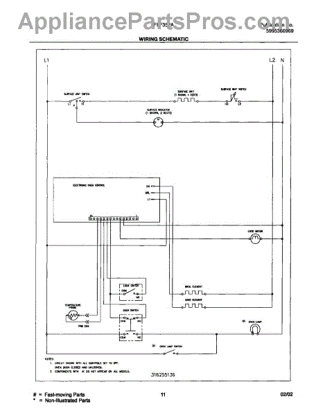 Parts for Frigidaire FEF352ASC: 11 - Wiring Schematic Parts