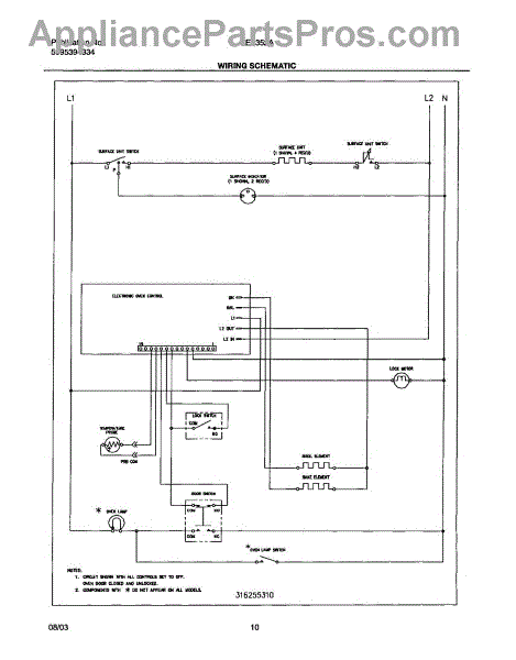 Parts for Frigidaire FEF352AWF: 10 - Wiring Schematic Parts
