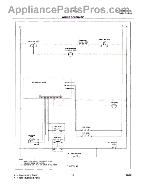 Parts for Frigidaire FEF355ABD: 11 - Wiring Schematic Parts