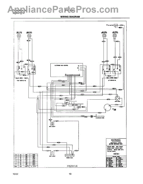 Parts for Frigidaire FEF355ASE: 10 - Wiring Schematic Parts