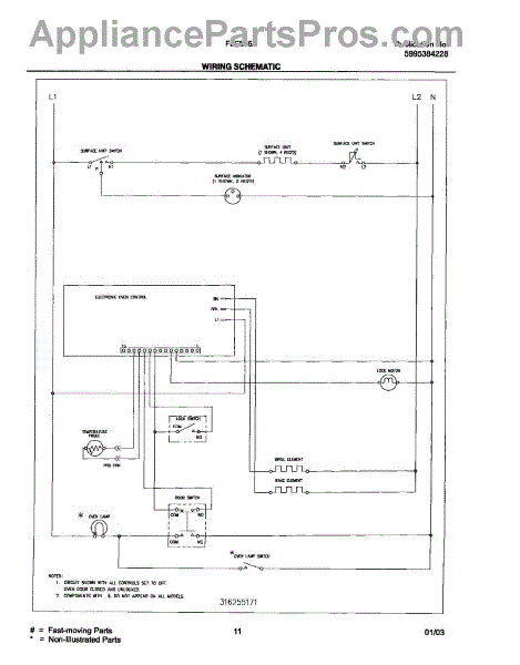 Parts for Frigidaire FEF355AWF: 11 - Wiring Schematic Parts