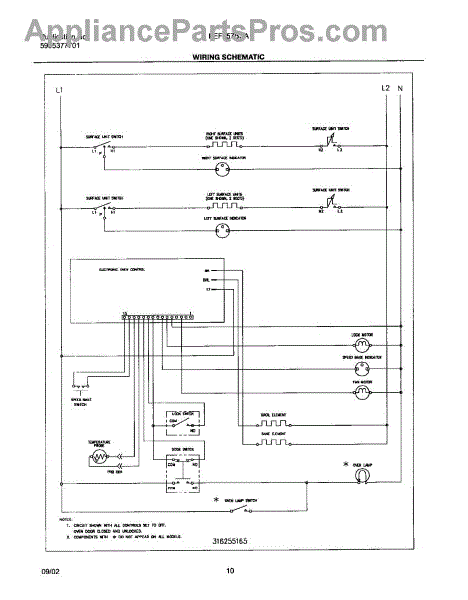 Parts for Frigidaire FEF357BSA: 10 - Wiring Schematic Parts