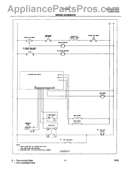 Parts for Frigidaire FEF365BUB: 11 - Wiring Schematic Parts