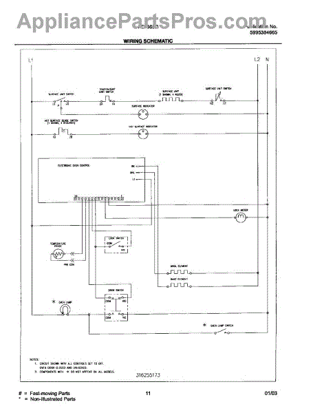 Parts for Frigidaire FEF365BUC: 11 - Wiring Schematic Parts