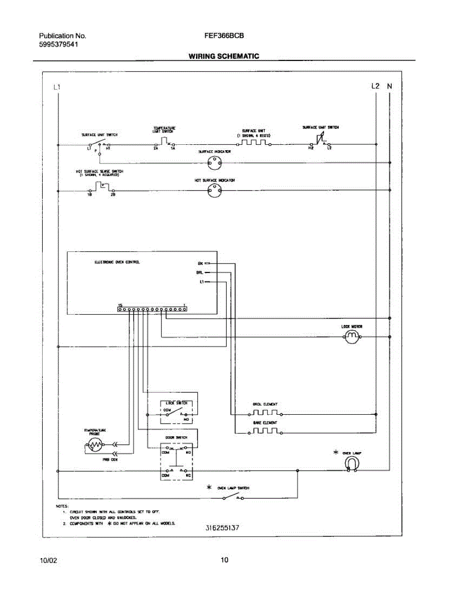Parts for Frigidaire FEF366BCB: 10 - Wiring Schematic Parts