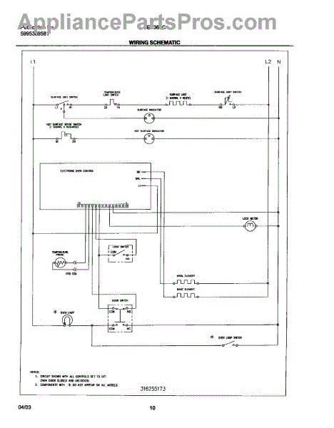 Parts for Frigidaire FEF366CQA: 10 - Wiring Schematic Parts