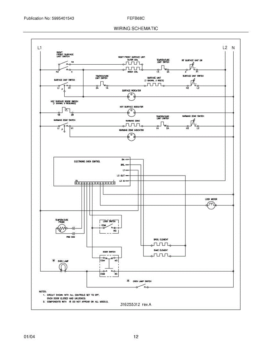 Parts for Frigidaire FEFB68CBB: 10 - Wiring Schematic Parts