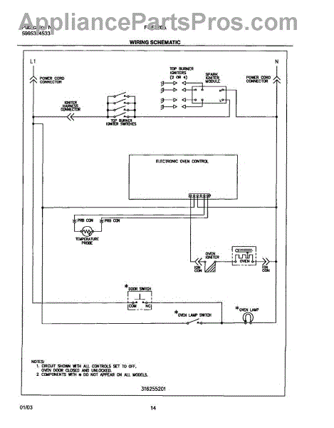 Parts for Frigidaire FGF326ASD: 14 - Wiring Schematic Parts