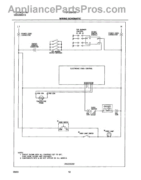 Parts for Frigidaire FGF326ASE: 12 - Wiring Schematic Parts