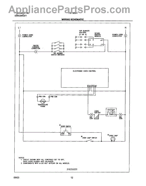 Parts for Frigidaire FGF326AWE: 12 - Wiring Schematic Parts