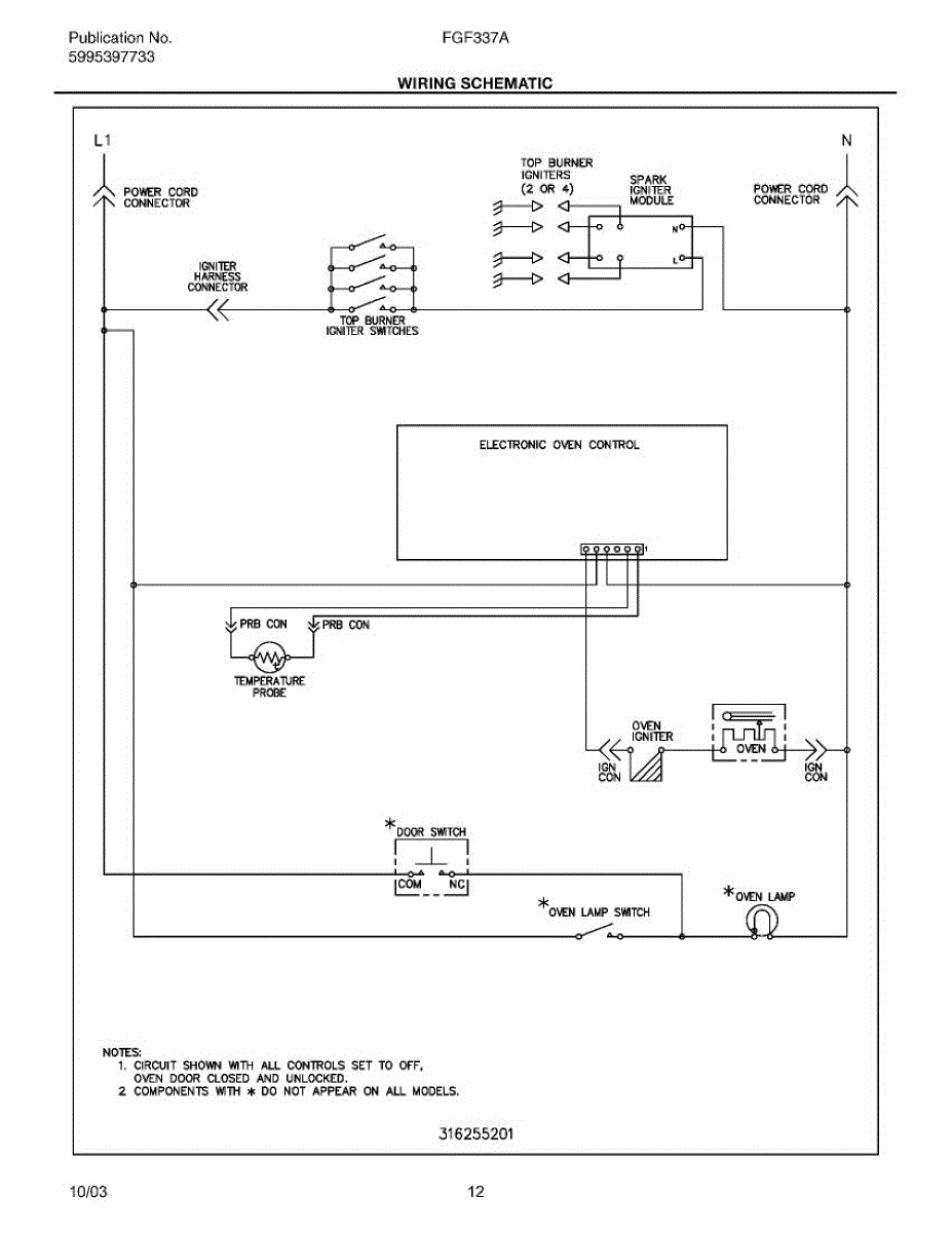 Parts for Frigidaire FGF337ASF: 12 - Wiring Schematic Parts