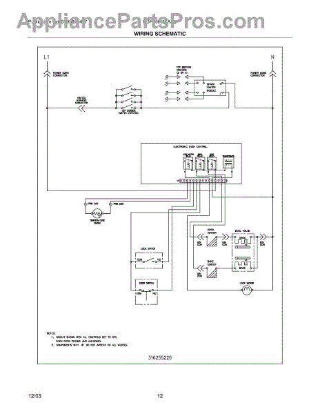 Parts for Frigidaire FGF350MXASB: 12 - Wiring Schematic Parts