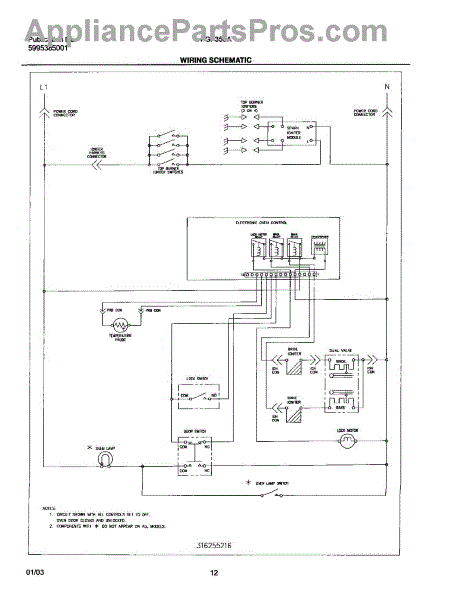 Parts for Frigidaire FGF355AUD: 12 - Wiring Schematic Parts