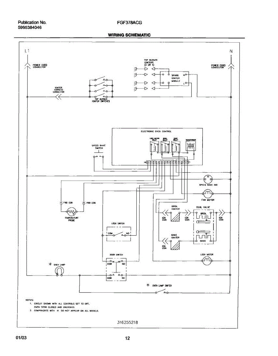Parts for Frigidaire FGF378ACG: 12 - Wiring Schematic Parts