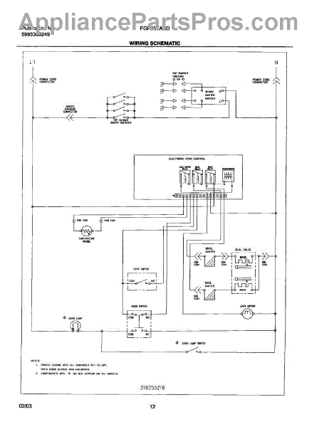 Parts for Frigidaire FGFB55ASD: 12 - Wiring Schematic Parts