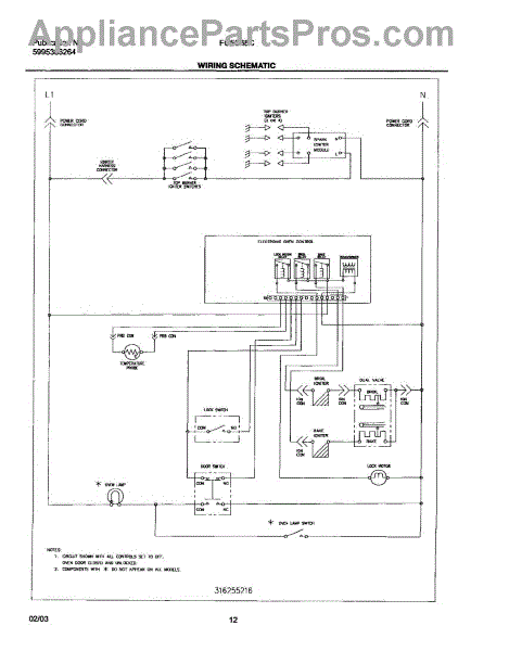 Parts for Frigidaire FGFB68CQA: 12 - Wiring Schematic Parts