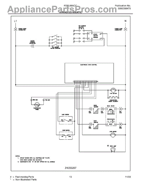 Parts for Frigidaire FGFL88ACC: 13 - Wiring Schematic Parts