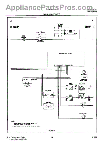Parts for Frigidaire FGFL88ASB: 13 - Wiring Schematic Parts