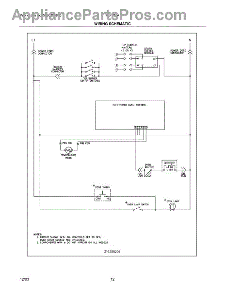 Parts for Frigidaire FLF337AUE: 12 - Wiring Schematic Parts