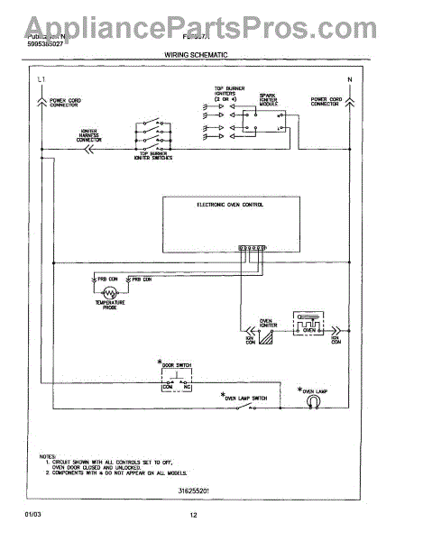 Parts for Frigidaire FLF337AWC: 12 - Wiring Schematic Parts